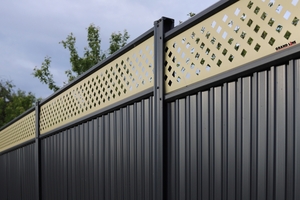 Ограждение Estet Plus имеет симметричный и красивый вид с двух сторон. Декоративное полотно придаёт ограждению эффектный внешний вид. Полотно устанавливается сверху, и благодаря ромбовидным отверстиям ограждение перестаёт быть "сплошным забором" и становится визуально лёгким.